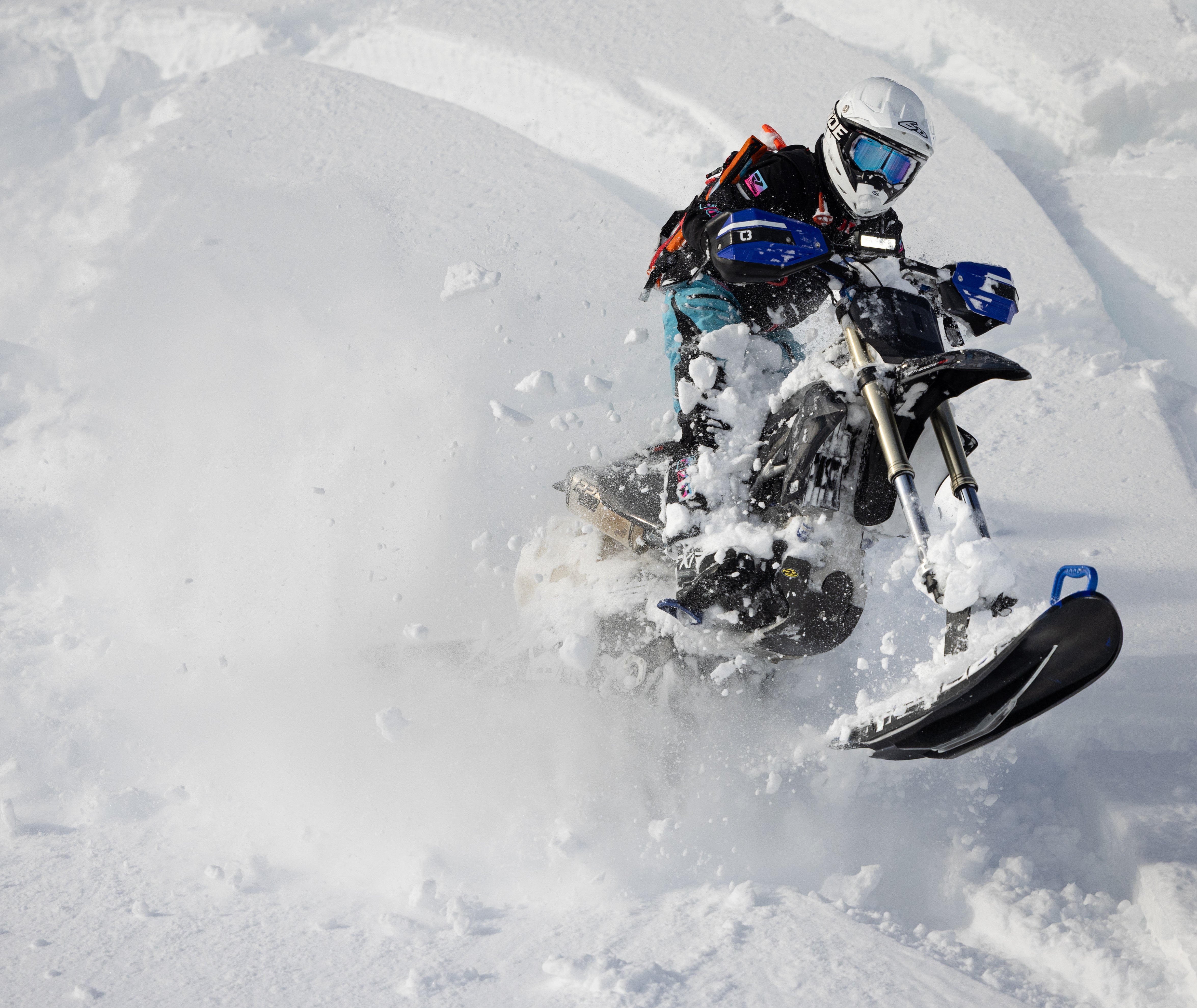 With FOX Air Shocks, YETI riders can experience the ultimate, adjustable snowbike suspension performance.